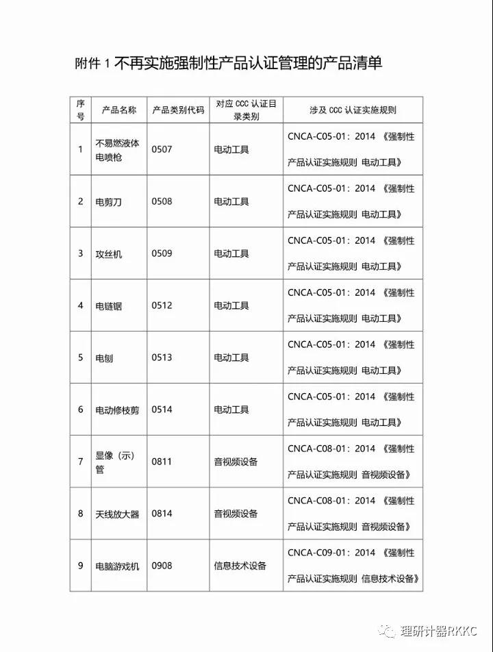 以下附上不再實(shí)施強(qiáng)制性產(chǎn)品認(rèn)證管理的產(chǎn)品清單: