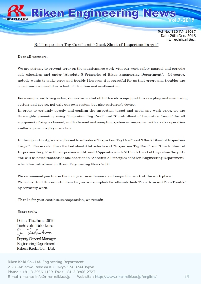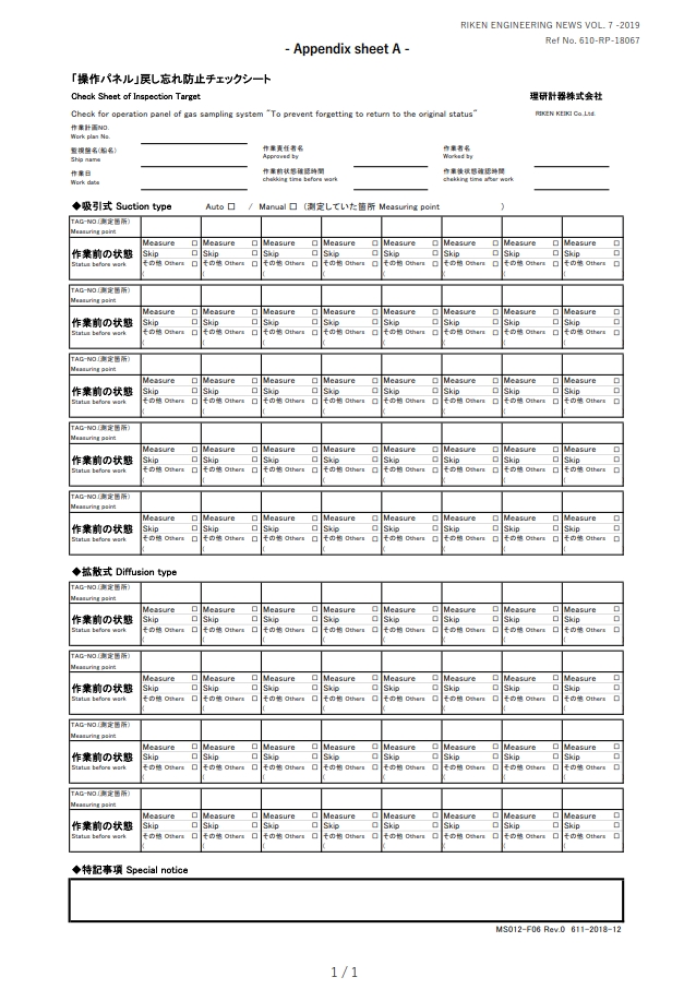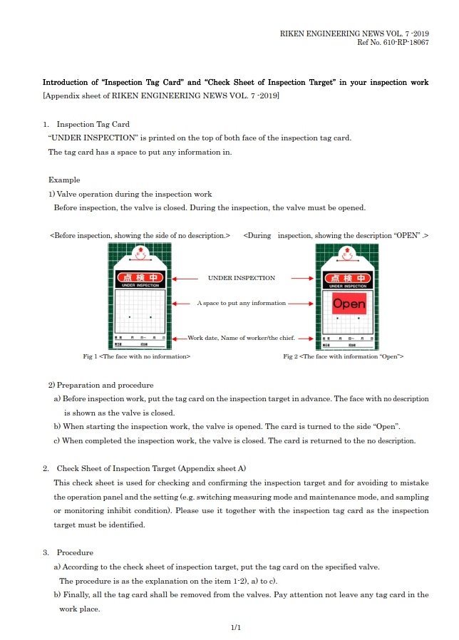 Inspection Tag Card_ and Check Sheet of Inspection Target