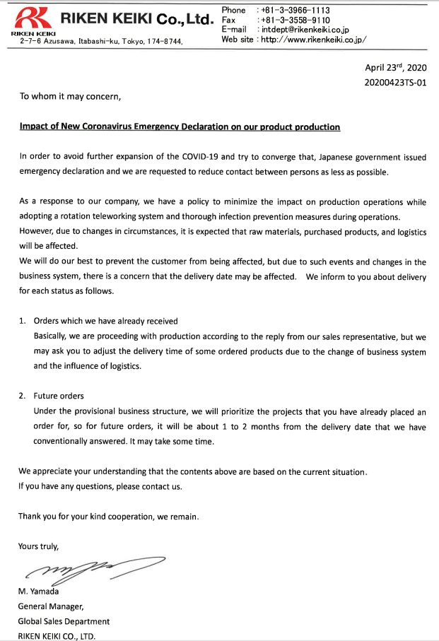 新型冠狀病毒應(yīng)急申報(bào)對(duì)我司產(chǎn)品生產(chǎn)的影響