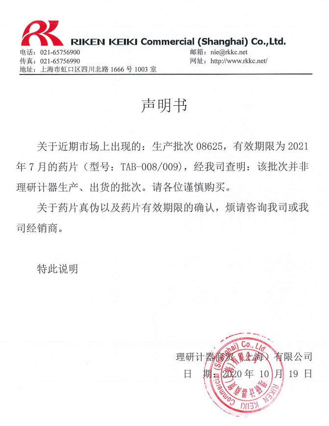 關(guān)于TAB的聲明書(型號TAB-008/009)